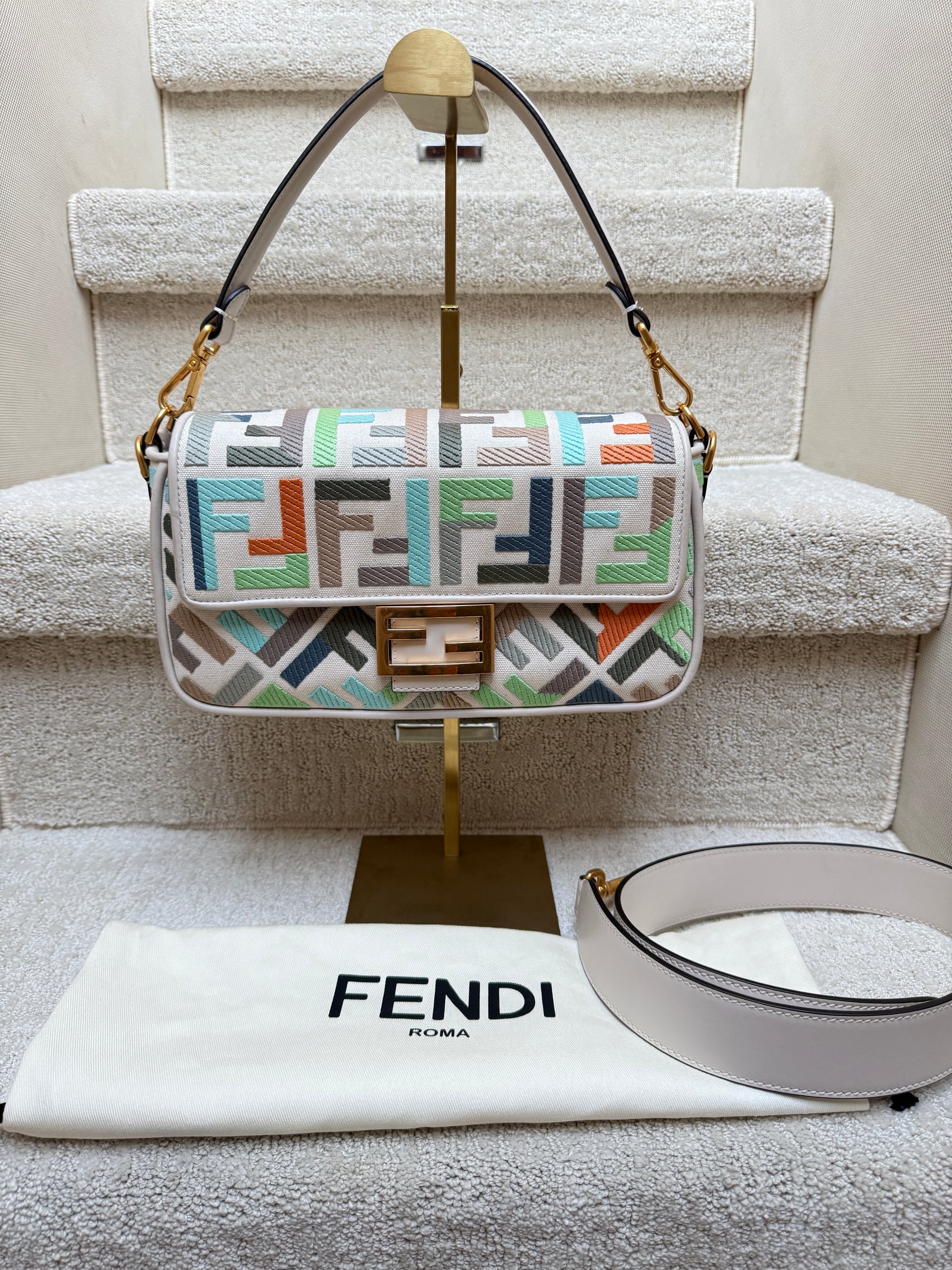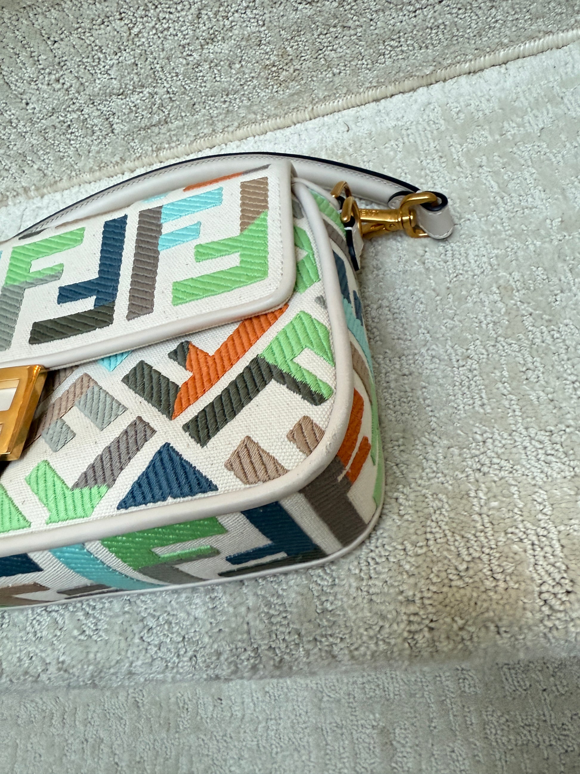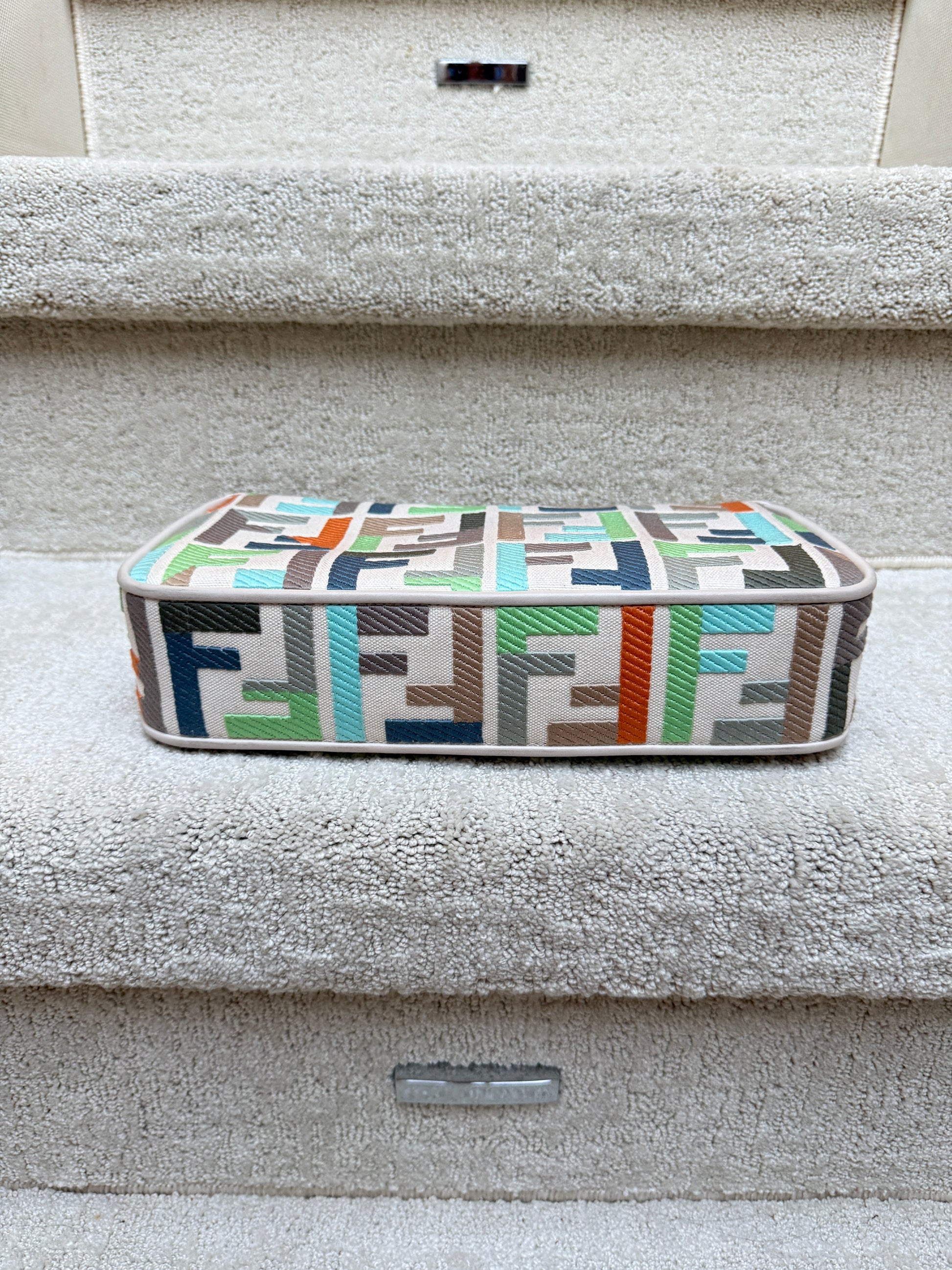 Fendi Canvas Vitello Seta FF Embroidered Baguette in pastel