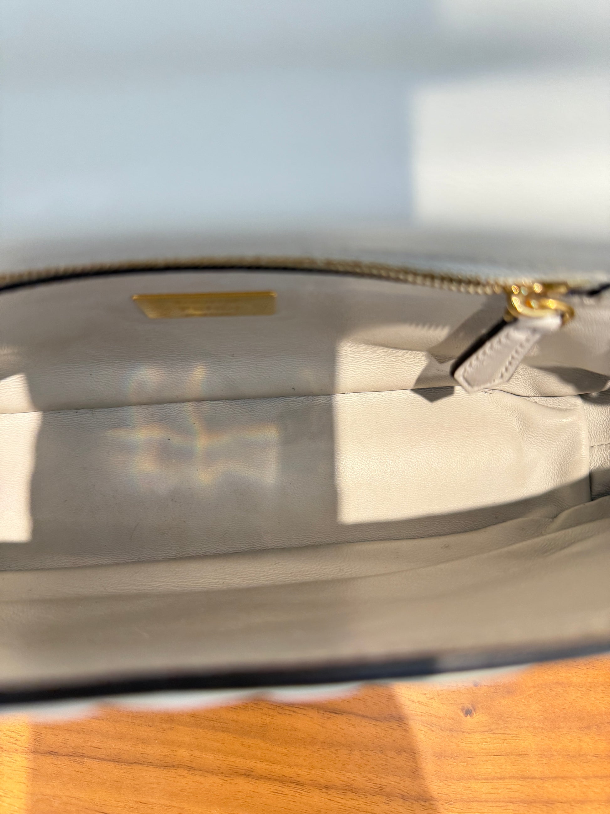 Fendi Midi Baguette In Grey Napa Leather with Gold Hardware