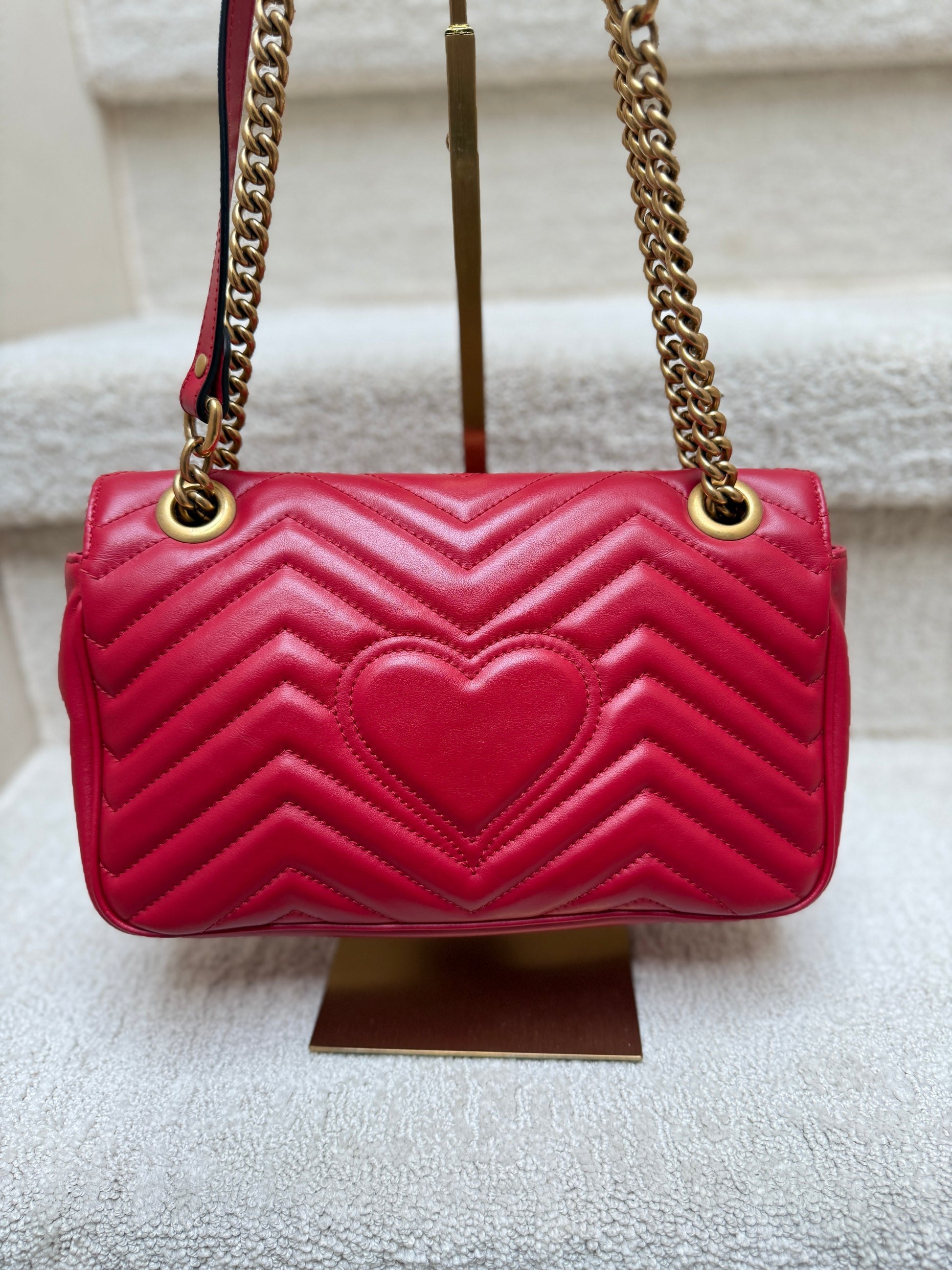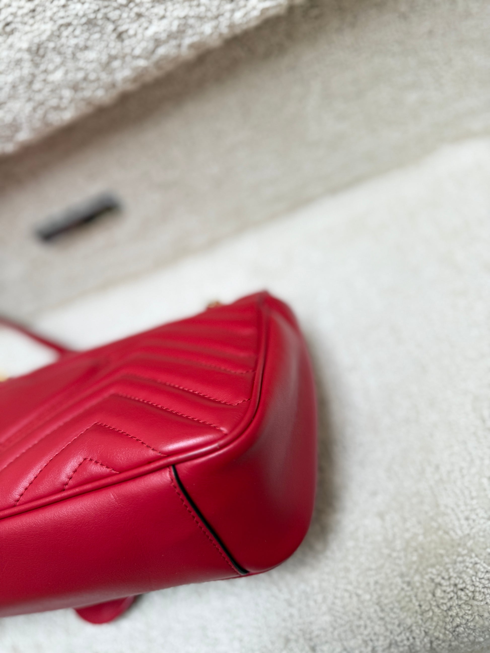 Gucci Calfskin Matelasse Small GG Marmont Shoulder Bag Red
