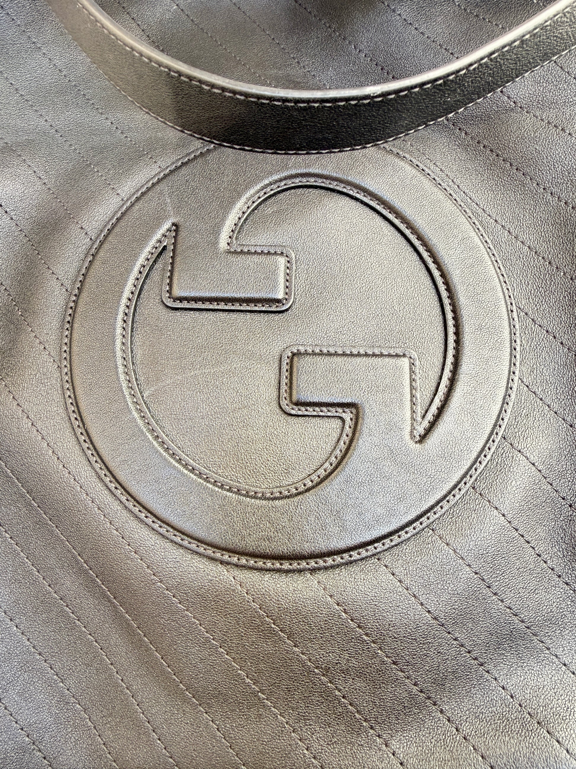 Gucci Sakai Be Green Calfskin Diagonal Stitched Medium Blondie Tote Black