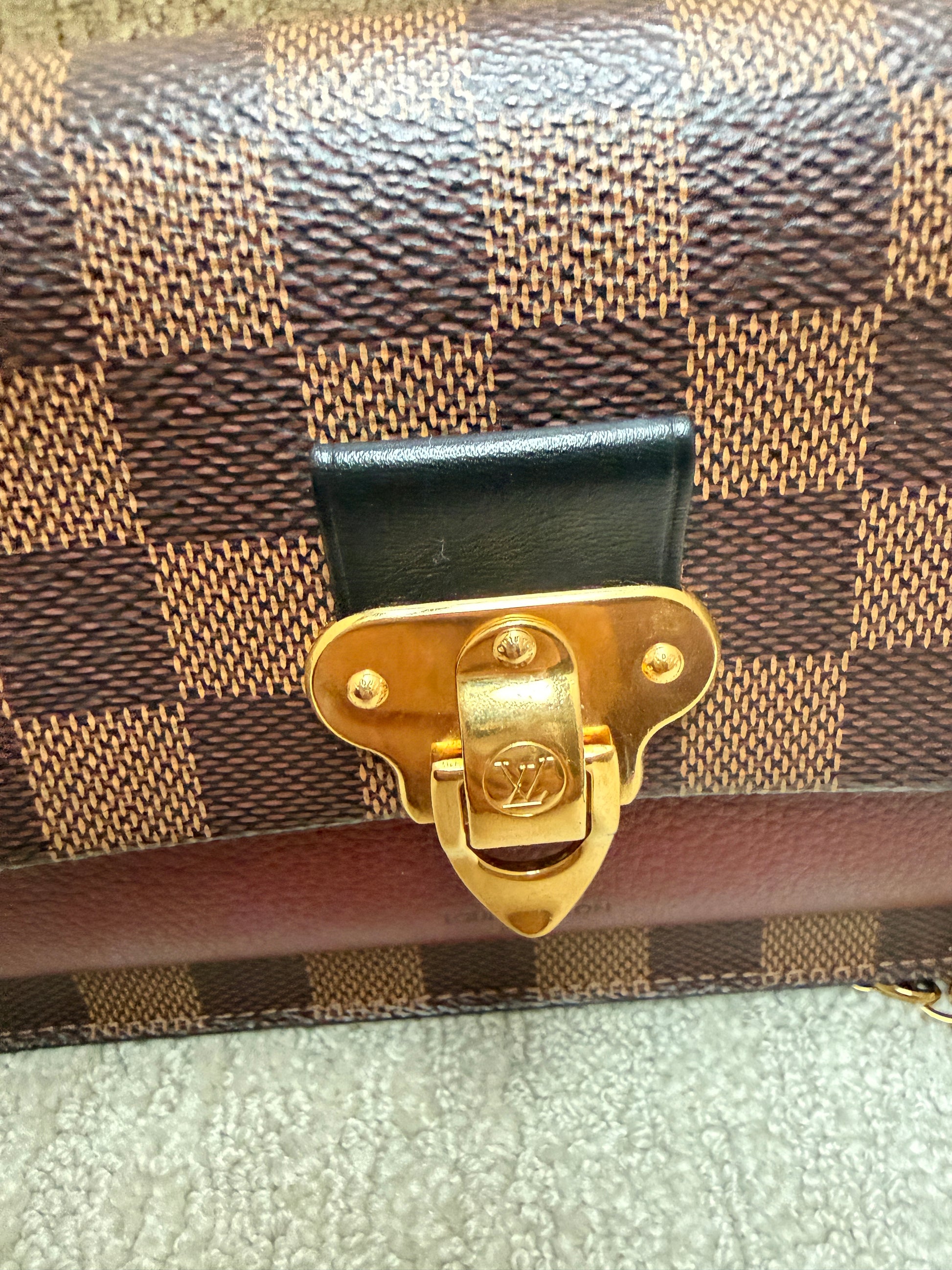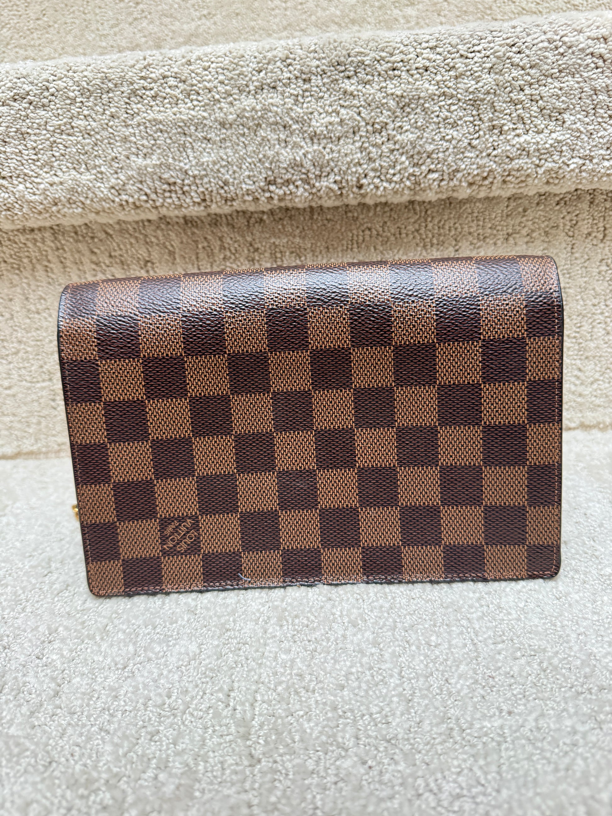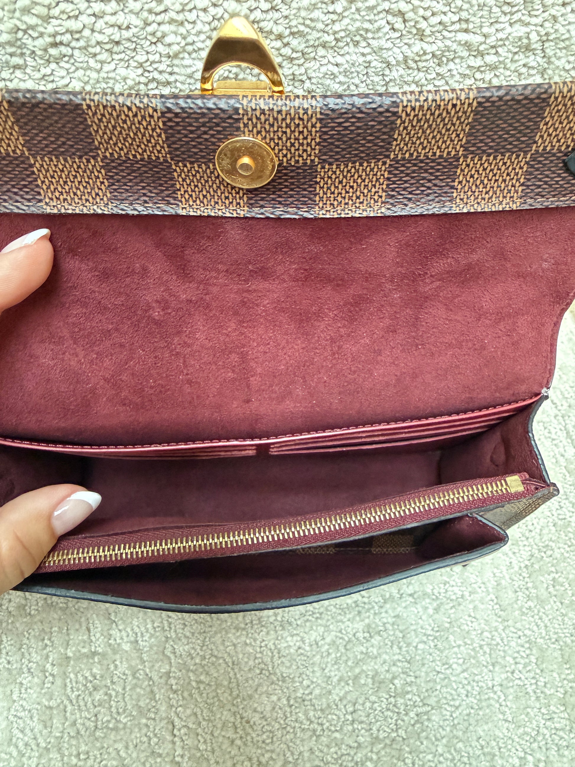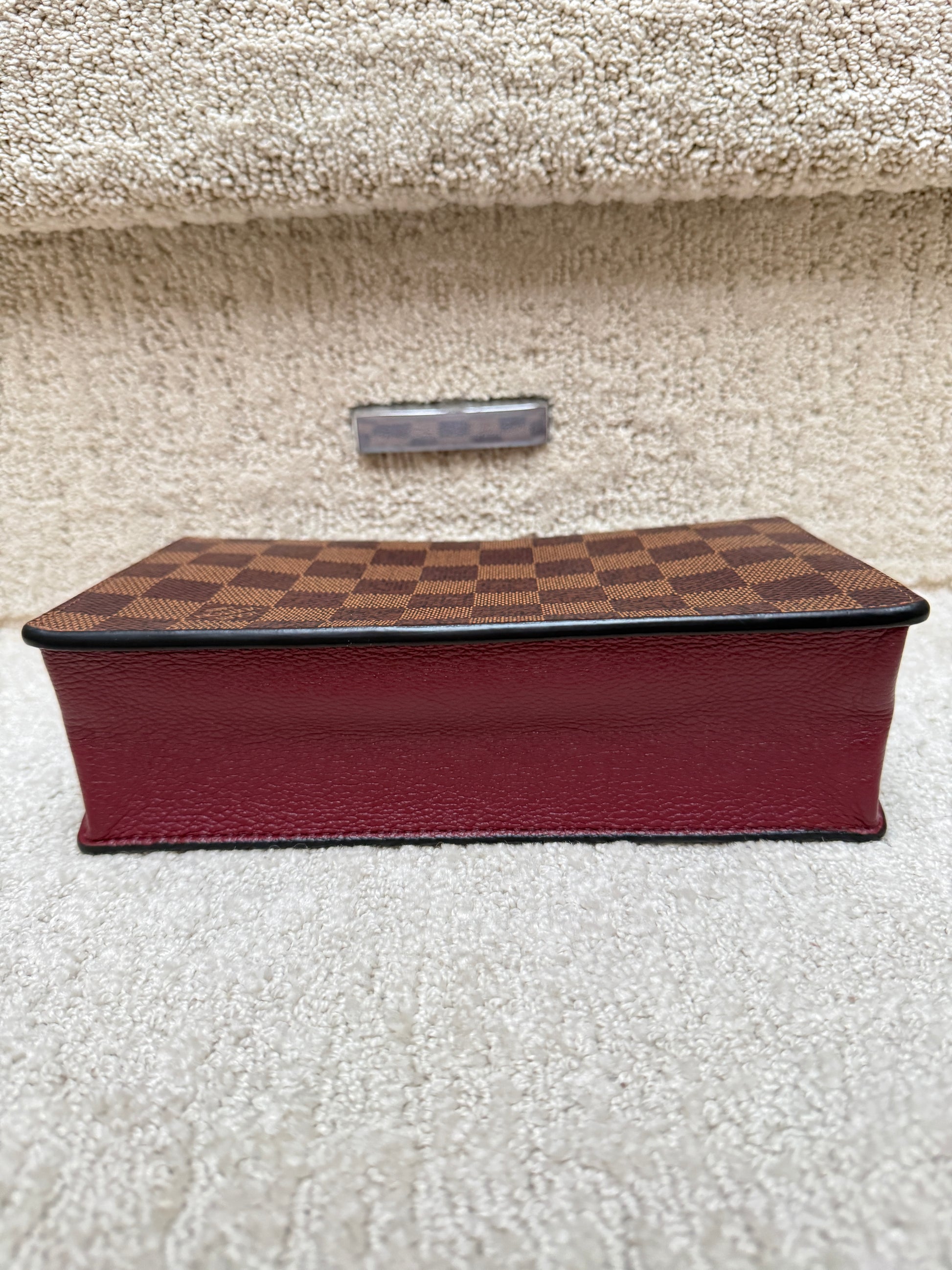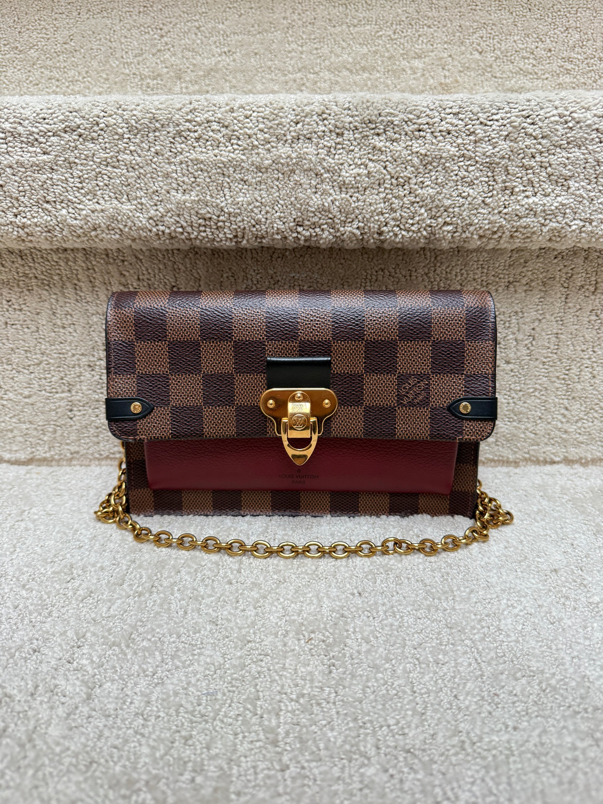 Louis Vuitton Damier Ebene Vavin Chain Wallet with Burgundy