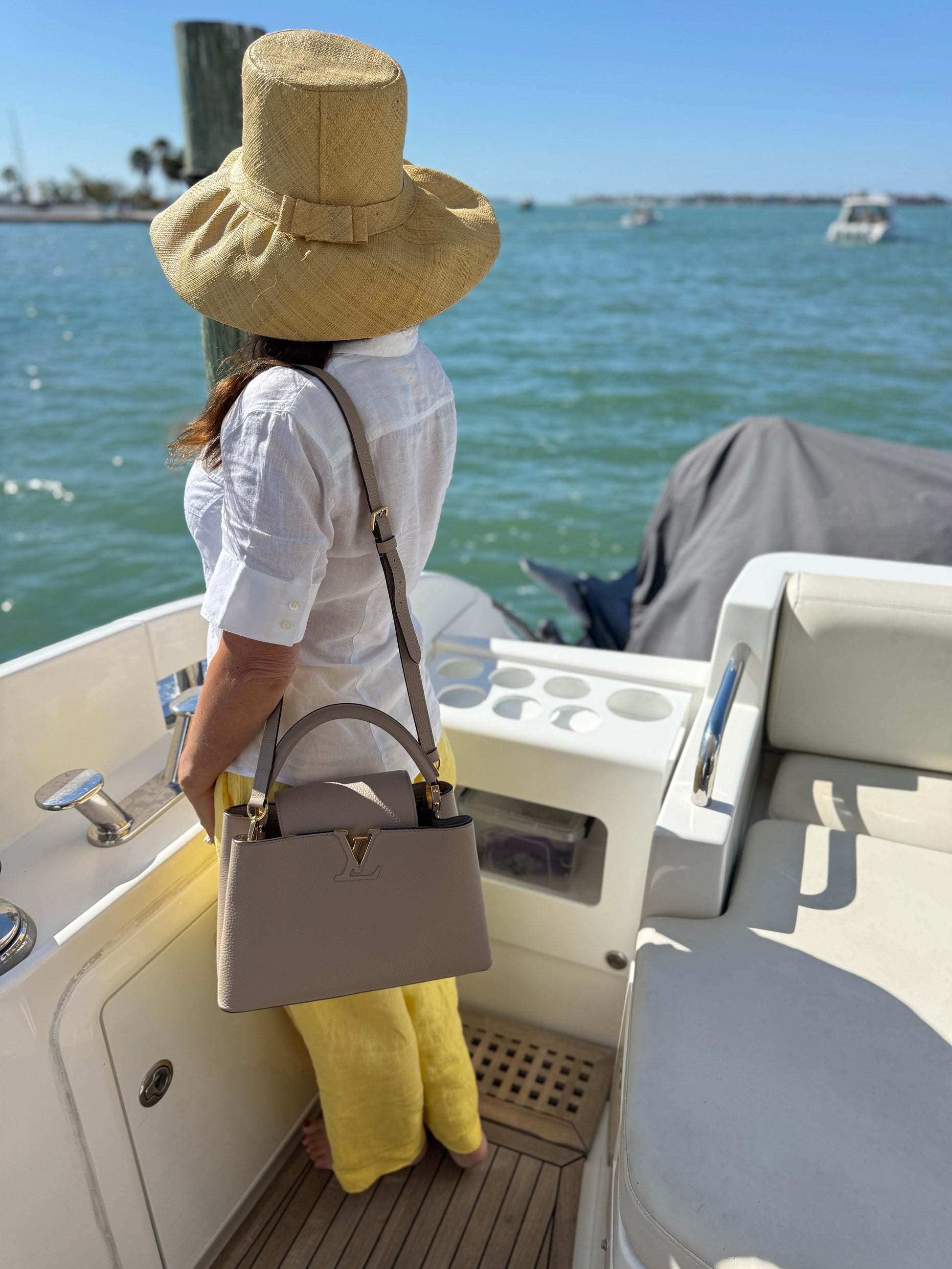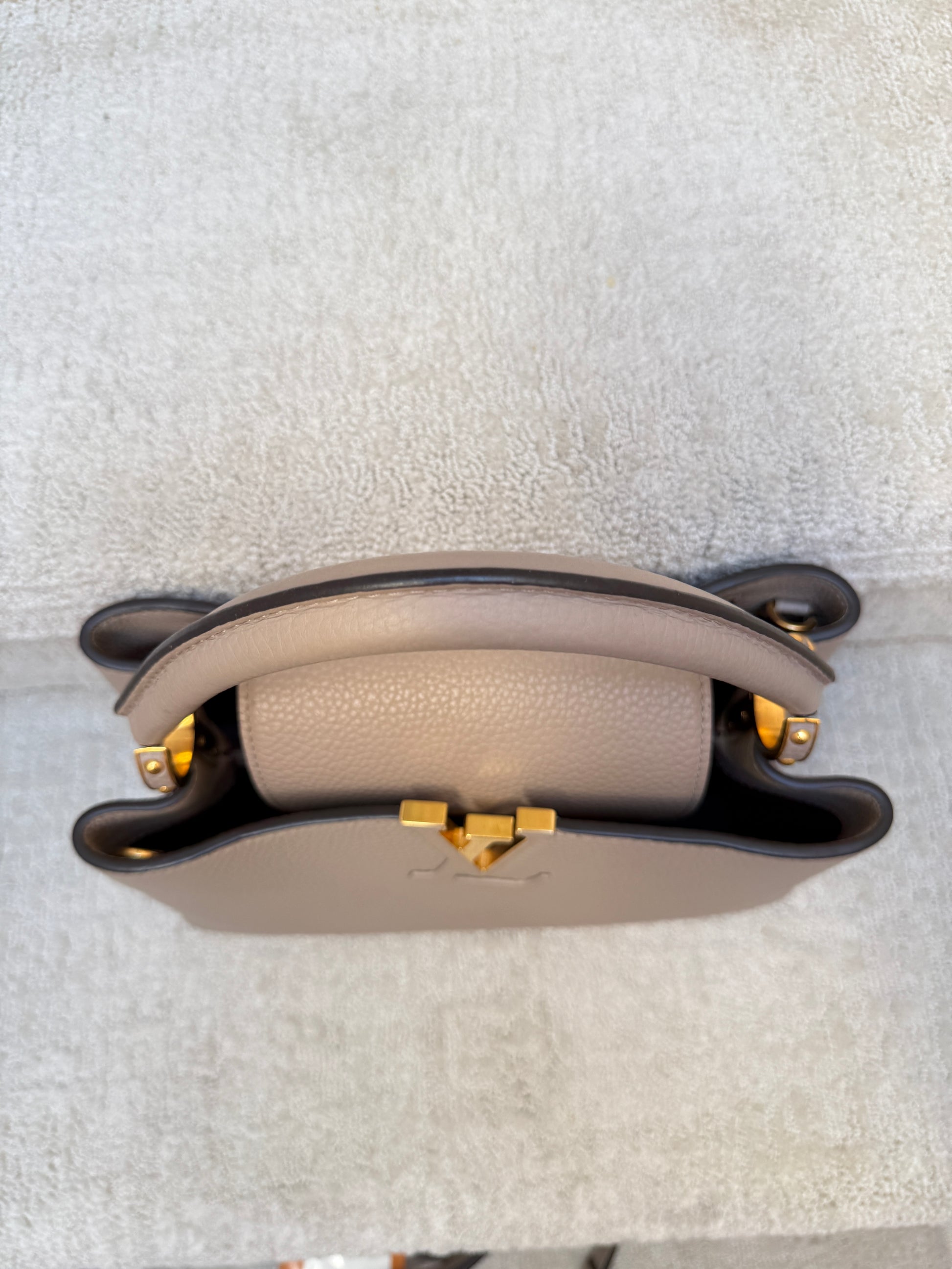 Louis Vuitton Taurillon Capucines PM in Galet or taupe